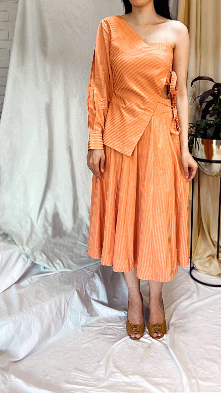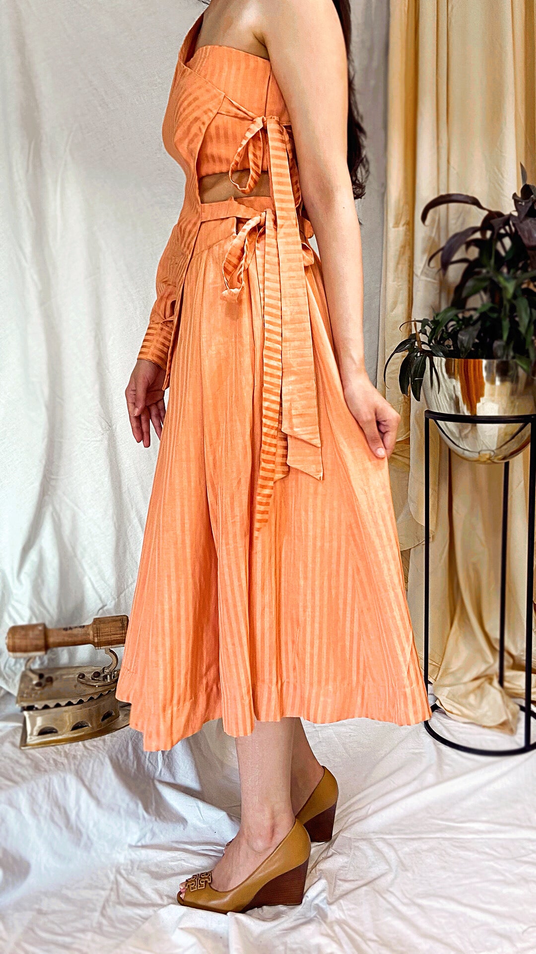 3-piece set - Calf length skirt, bustier and one side jacket with tie ups on one side