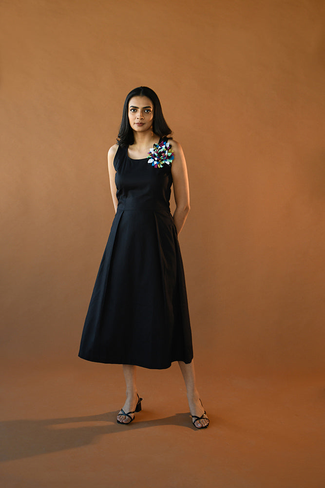 Side zipper opening 2 pockets on skirt part Detachable brooch.